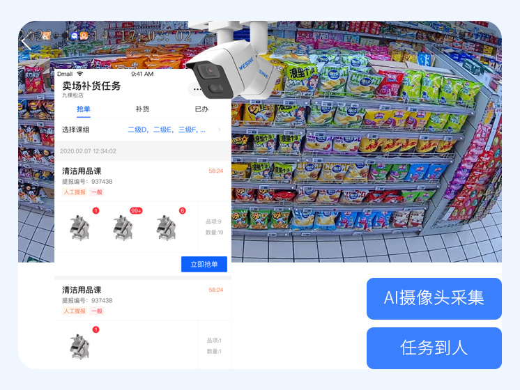 The restocking system uses sales, inventory, display information, and AI camera analysis results to achieve timely and efficient restocking management, with audit safeguards in place.