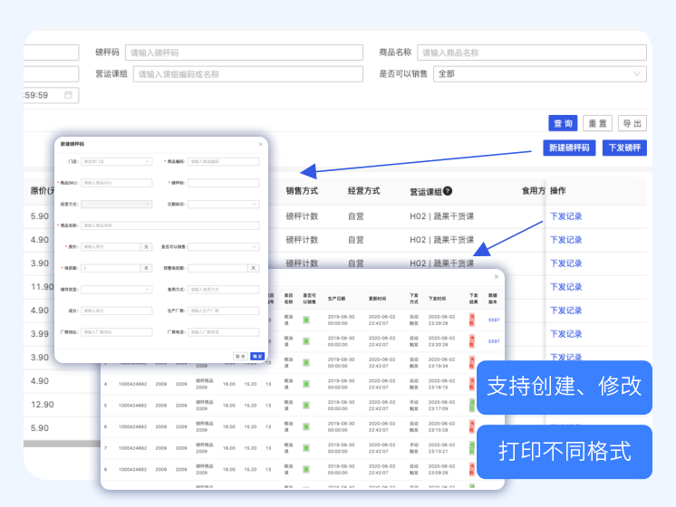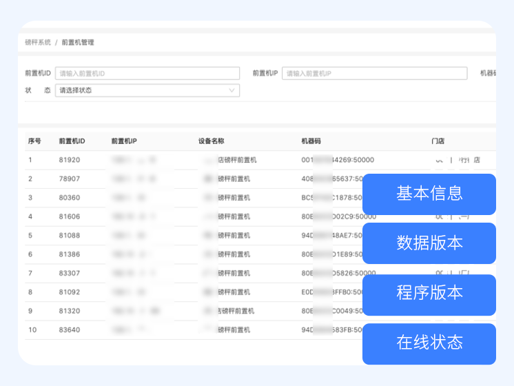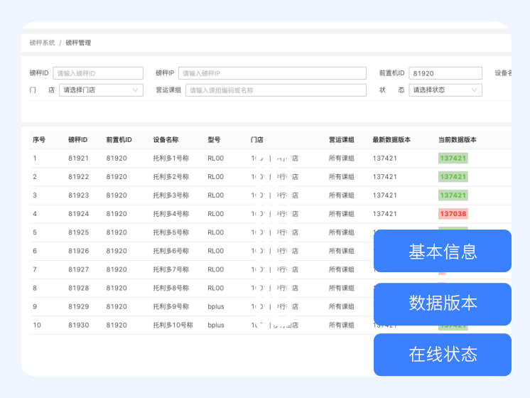 Ability to view basic information about scales in each store, data version, and online status in scale management.