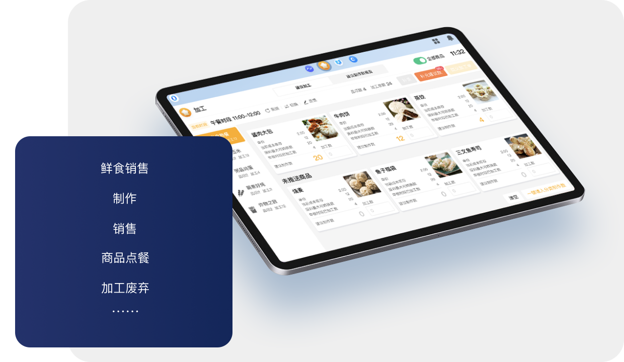 This system helps manage cold display cabinets and freshly made beverages, while providing time-based suggestions for processing to improve efficiency and product presentation.
